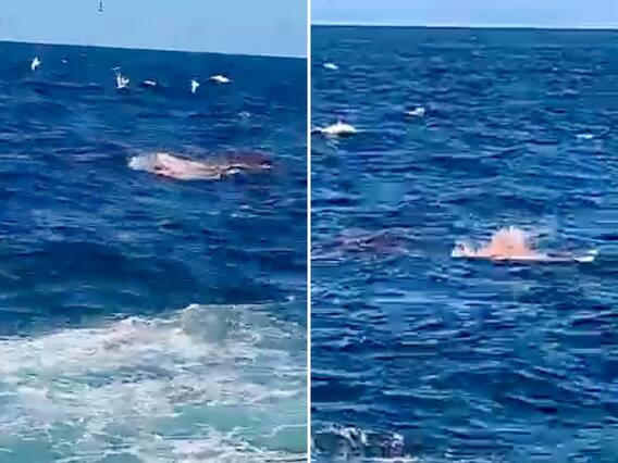 Trending News: सोशल मीडिया पर एक वीडियो तेजी से वायरल हो रहा है. यह रौंगटे खड़े कर देने वाला वीडियो ऑस्ट्रेलिया के सिडनी के लिटिल बे बीच का है, जहां एक 13 फिट की व्हाइट शार्क ने समुद्र में तैर रहे एक शख्स पर हमला कर दिया और देखते ही देखते उसे पूरा निगल गई. समुद्र के किनारे खड़े लोगों ने इस पूरी घटना को अपनी आंखों से देखा और उन्हीं में से एक शख्स ने पूरे मंजर को अपने कैमरे में कैद कर लिया. समुद्र के किनारे खड़े असहाय लोग जोर-जोर से चिल्लाते रहे. वीडियो में एक शख्स चिल्लाता हुआ साफ दिखाई दे रहा है कि 'अभी अभी शार्क ने किसी को खाया है.'