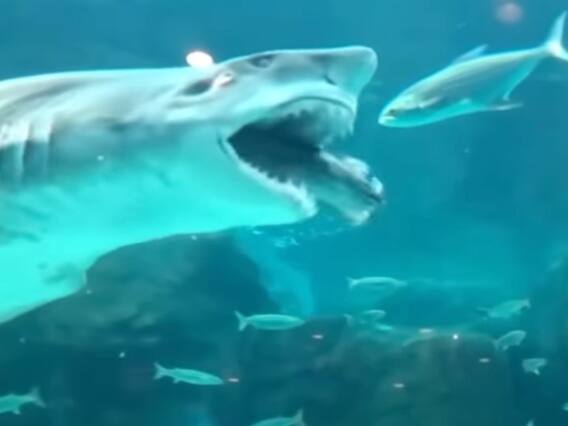 महज कुछ सेकेंड के वीडियो में शार्क की पूरी करतूत नज़र आ जाती है. वीडियो में देखा जा सकता है कि एक शार्क पानी में मौजूद है. देखने में पानी किसी समुद्र का ही लग रहा है. वीडियो में जैसे ही एक बड़ी मछली शार्क के पास से गुजरती है, शार्क उसे अपने बड़े और नोकीले दांतों में फंसा लेती है. शार्क पल भर में पूरी मछली को अपने मुँह में भर लेती है. जो देखने में काफी सहमा देने वाला है. वीडियो देख नेटिजंस के पसीने छूट रहे है.