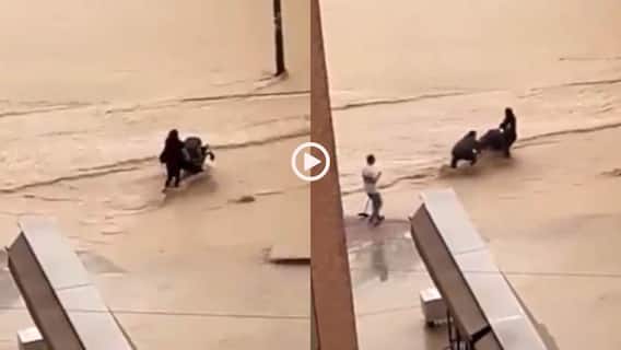महिला स्ट्रॉलर को संभालते हुए आगे बढ़ने की कोशिश करती है, लेकिन पानी का जोर इतना अधिक होता है कि उसका बैलेंस बिगड़ जाता है और स्ट्रॉलर उसके हाथ से छूटकर बहने लगता है. यह दृश्य बेहद डराने वाला था, क्योंकि स्ट्रॉलर में बच्चा मौजूद था और वो सीधे पानी की दिशा में बह रहा था.