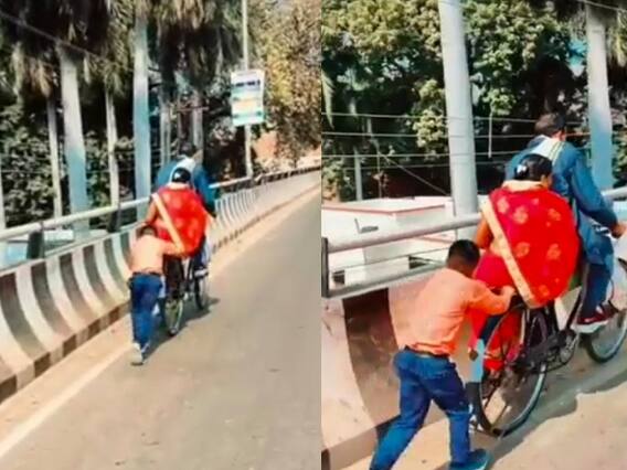 वायरल वीडियो (Viral Video) में एक छोटा बच्चा अपने माता-पिता की साइकिल को फ्लाईओवर पर चढ़ने में मदद करने के लिए धक्का देता नजर आ रहा है. इस नजारे को देख आसपास से गुजर रहे लोग भी हैरान रह जाते हैं. ये वीडियो निश्चित रूप से कई लोगों की आंखें खुशी से नम भी कर सकता है. इस दिलचस्प घटना को वहीं से गुजर रहे किसी बाइकसवार ने कैमरे में कैद कर लिया. इस वीडियो को आईएएस अधिकारी अवनीश शरण ने ट्विटर पर शेयर किया है, जिसके बाद ये क्लिप वायरल है.