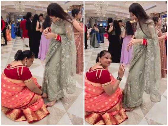 भारत में हर सास बुरी नहीं होती है, इसका जीता जागता उदाहरण वायरल हो रहे एक वीडियो में देखने को मिल रहा है. एक पार्टी समारोह के दौरान एक सास को अपनी बहू की साड़ी के किनारे को ठीक करते देखा जा रहा है. जिसमें सास अपने घुटने के बल बैठ बहू के साड़ी के किनारे को अपने हाथों से ठीक करते नजर आ रही है. जिसे देख हर कोई अपना दिल हार बैठा है.