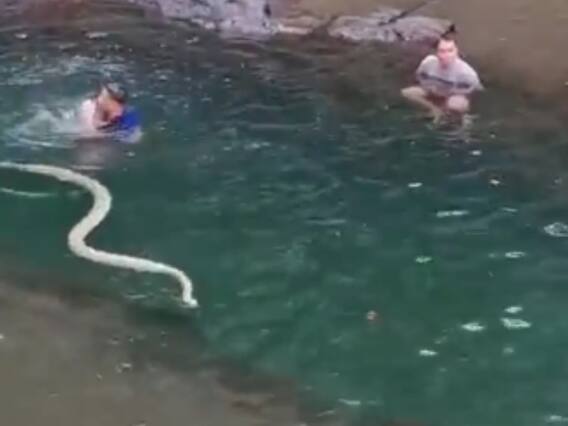 ऐसे ही इस वायरल वीडियो में देखा जा सकता है कि कुछ विदेशी लोग एक नदी की धारा में तैरने का आनंद ले रहे थे जिसमें सुंदर नीला पानी था. अचानक एक विशाल सांप पानी में घुस गया और एक लड़के के पीछे तैरने लगा. जब सांप उसका पीछा करता रहा तो लड़का जल्दी से पानी से बाहर निकल आया. जबकि लड़के ने दूरी बनाए रखी, वह डरा नहीं और उसे सांप को देखकर बहुत आश्चर्य भी नहीं हुआ. लोगों के साथ सांप को तैरते देख, वो गलियां देते देखा जा सकता है.