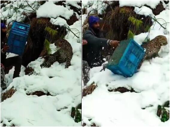 वीडियो को सोशल मीडिया पर रंजीत जाधव ने शेयर किया है. इसमें एक स्नो लेपर्ड कुछ लोगों से अपनी जान बचाते हुए बर्फीले पहाड़ों की ओर भागते नजर आ रहा है. तभी हाथों में जाल लिए लोग उसे घेर लेते हैं. जिसे देख स्नो लेपर्ड काफी डर जाता है. इसके बाद कुछ लोग प्लास्टिक के डिब्बे से स्नो लेपर्ड पर वार भी करते हैं. जिसके बाद एक शख्स अचानक से स्नो लेपर्ड के पैर को पकड़कर खींच लेता है.