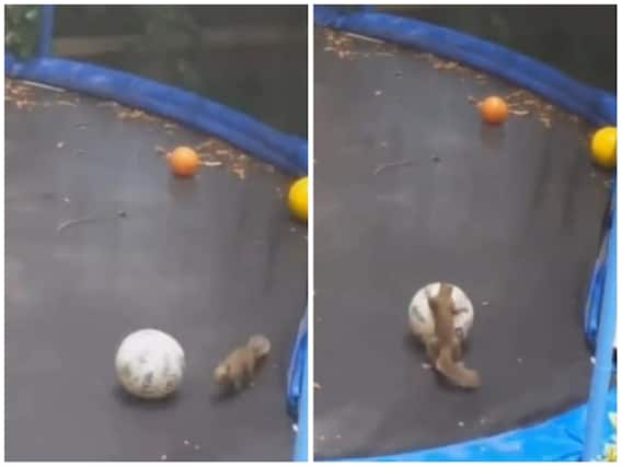 आमतौर पर काम पर लगी रहने वाली गिलहरी को अलग अंदाज में देखना हर किसी को लुभा रहा है. वीडियो में गिलहरी को घर के बैकयार्ड में बच्चों के खेलने के लिए रखे ट्रैम्पोलाइन में एक गिलहरी को घुस जाती है. इस दौरान गिलहरी अपनी खोजबीन और खाने की तलाश करते हुए एक फुटबॉल तक पहुंच जाती है. इसके बाद वह उसके साथ खेलती नजर आती है.