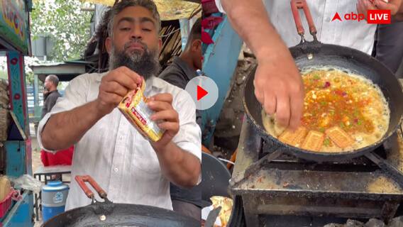 वीडियो में देखा जा सकता है कि एक स्ट्रीट फूड वेंडर सबसे पहले पैन में बटर डालकर उसे अच्छे से पिघलाता है. फिर आता है अंडे का नंबर. दो-तीन अंडे फोड़कर उनका लिक्विड पैन में डालता है और फिर शुरू होता है मसालों का तड़का. प्याज, हरी मिर्च, धनिया, नमक, चाट मसाला और न जाने क्या-क्या. सबकुछ अभी तक ठीक चल रहा होता है. लेकिन तभी वो कुछ ऐसा करता है कि लोगों का सिर चकरा जाता है. ऑमलेट के ऊपर ब्रेड की जगह वो पारले जी बिस्कुट रख देता है.