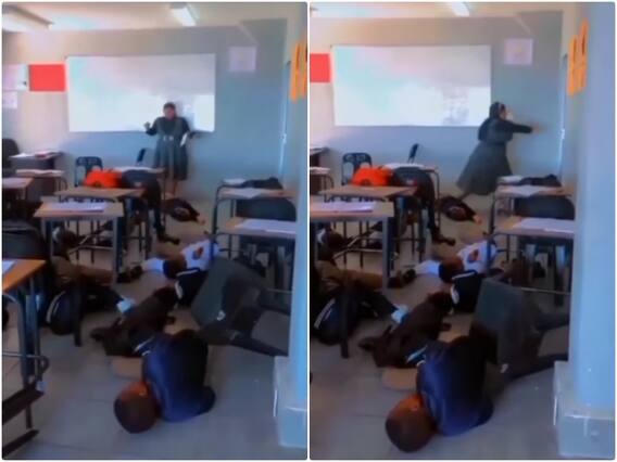 सोशल मीडिया पर सामने आई इस वीडियो में एक छात्र को सबसे पहले क्लास टीचर के पास जाते देखा जा रहा है. जैसे ही वह टीचर के पास जाता है और उन्हें छूता है वह जमीन पर गिर जाता है. ऐसा होते ही सभी छात्र अपनी-अपनी सीट पर खड़े होकर एक साथ जमीन पर गिर जाते हैं. इसके बाद मैडम नीचे गिरे छात्र को चेक करने के लिए झुकती है. उसी दौरान वह काफी डर जाती है और इसी डर के कारण वह क्लास से बाहर भाग जाती हैं.