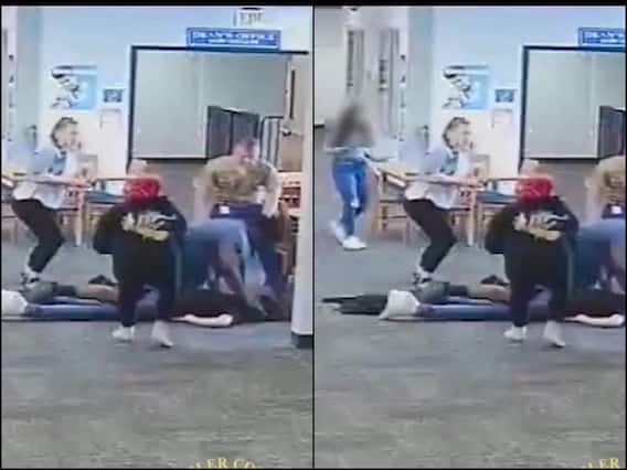 जानकारी के मुताबिक ये घटना पाम कोस्ट के मातनजस हाई स्कूल में हुई, जहां क्लास के दौरान एक छात्र वीडियो गेम खेल रहा था और टीचर ने तभी उसका निंटेंडो स्विच वीडियो गेम डिवाइस को जब्त कर लिया. तब इस किशोर छात्र ने क्लास के बाहर टीचर की पिटाई कर दी, जिसका वीडियो सीसीटीवी में कैद हो गया. छात्र की इस खौफनाक हरकत का वीडियो ट्विटर पर शेयर किया गया जो अब सोशल मीडिया पर वायरल हो गया है. वीडियो में गुस्से में एक किशोर छात्र को स्कूल के बरामदे में टीचर की ओर दौड़ते हुए देखा जा सकता है. फिर ये छात्र अपनी टीचर को फर्श पर धकेल देता है और उन पर लात और घूंसे की बरसात करने लगता है. छात्र की ऐसी हरकत देखकर कुछ लोग, टीचर को बचाने के लिए दौड़कर जाते हुए वीडियो में देखा जा सकता है.