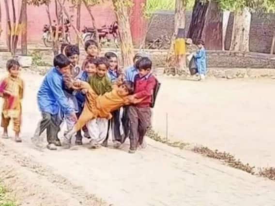 इसी दृश्य को दिखाती एक तस्वीर सोशल मीडिया पर काफी वायरल हो रही है. वायरल तस्वीर में देखा जा सकता है कि कई बच्चों ने एक बच्चे को अपने ऊपर टांग रखा है और उसे जबरदस्ती स्कूल लेकर जा रहे हैं. इस तस्वीर को देखने के बाद सोशल मीडिया पर लोग अलग-अलग तरह से रिएक्ट कर रहे हैं. कई यूजर्स इस तस्वीर पर मजेदार कमेंट्स भी कर रहे हैं.
