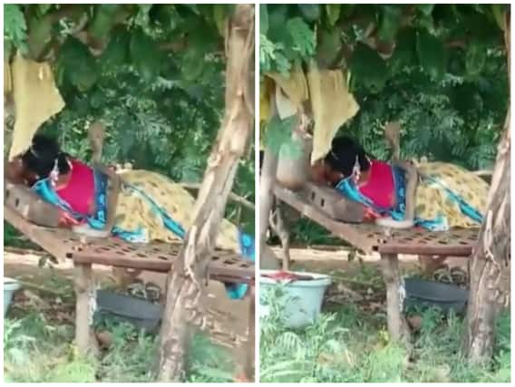 वायरल हो रहे इस वीडियो को सोशल मीडिया पर आईएफएस अधिकारी सुशांत नंदा ने शेयर किया है. जिसमें एक महिला को ग्रामीण परिवेश में अपने पशुओं के पास खाट पर लेटे देखा जा रहा है. यूजर्स की आंखें उस वक्त फटी की फटी रह जाती हैं, जब वह उस महिला के ऊपर फन फैलाए कोबरा सांप को देखते हैं.