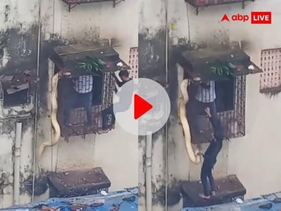वायरल वीडियो में आप देख सकते हैं कि अजगर को नीचे गिरने से बचाने के लिए दो लोग उसका रेस्क्यू करने में लगे हुए हैं. एक व्यक्ति खिड़की के बाहर तो दूसरा खिड़की के अंदर से अजगर को पकड़ने की कोशिश कर रहा है. शख्स अजगर को खिड़की के अंदर लेने के प्रयास में जुटा हुआ है, ताकि वह नीचे न गिर जाए. खिड़की में फंसे इस अजगर को निकालने के बाद नीचे की ओर गिरा दिया गया. यह घटना ठाणे के नौपाड़ा की बताई जा रही है. आसपास के लोगों ने जब इस इंसिडेंट को देखा तो उन्होंने इसका वीडियो कैप्चर कर लिया.