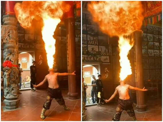Trending News: हम आए दिन सोशल मीडिया पर हैरतअंगेज करतब करने वाले लोगों को देखते ही रहते हैं. जिसे देख यूजर्स अपना दिल थाम लेते हैं. दिल की धड़कने बढ़ा देने वाले ऐसे वीडियो रोमांच से भरे होने के कारण सभी के पसंदीदा होते हैं. ऐसे में अगर आपको किसी ड्रैगन की तरह कोई अपने मुंह से आग निकालते दिख जाए तो हैरानी होना लाजमी है.