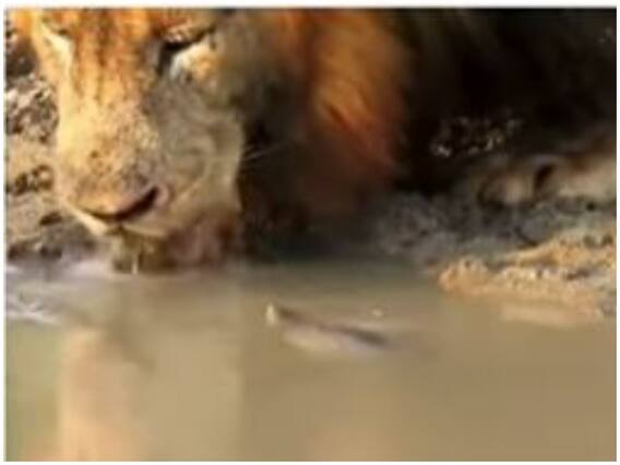 दरअसल वायरल हो रही क्लिप में एक शेर तालाब किनारे पानी पीता दिख रहा है. उसका ध्यान पूरी तरह से पानी पीने पर होता है. तभी वहां पानी के अंदर तैरते हुए एक कछुआ सामने आ जाता है और वह शेर को वहां से हटाने के लिए उस पर अपने मुंह से हमला करता है.