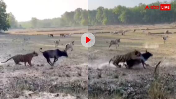 सोशल मीडिया पर वायरल हो रहा ये वीडियो जंगल के एक खुले मैदान का है, जहां एक गाय बड़ी शांति से घास चर रही होती है. तभी अचानक पास की झाड़ियों से लाल आंखों वाला एक टाइगर बिजली की रफ्तार से बाहर निकलता है. तेज धार नाखून, सटीक निशाना और जबरदस्त छलांग के साथ वो गाय पर टूट पड़ता है. बेचारी गाय को संभलने तक का मौका नहीं मिलता और वो पूरी तरह से हार बैठती है. इसके बाद टाइगर अपने नुकीले दांत सीधे उसके गले में घुसा देता है और गाय वहीं तड़पने लगती है. इस मंजर को देख स्क्रीन के उस पार बैठे लोग भी सिहर उठे और जंगल की इस खूनी हकीकत को देख उनकी आत्मा कांप गई.