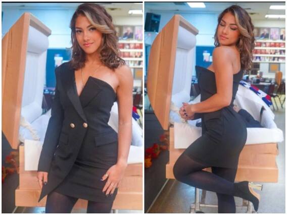 TikTok Star's Open-Casket Funeral Photoshoot: सोशल मीडिया पर एक अमेरिकी फिटनेस मॉडल की तस्वीर काफी सुर्खियां बटोर रही है. दरअसल, फिटनेस मॉडल और सोशल माडिया इन्फ्लूएंसर जेने रिवेरा (Jayne Rivera) ने अपने पिता के ताबूत के सामने पोज देने वाली तस्वीरों की एक सीरीज शेयर की है. इस तस्वीर के शेयर होने के साथ ही इसे ऑनलाइन खूब ट्रोल किया जा रहा है. अंतिम विदाई के दौरान (Funeral) महिला जिस तरह ग्लैमरस पोज में नजर आ रही हैं उसे देखकर यूजर उन्हें काफी ट्रोल कर रहे हैं और अंतिम समय के दौरान इस तरह की फोटोशूट कराने पर सवाल खड़े कर रहे हैं.