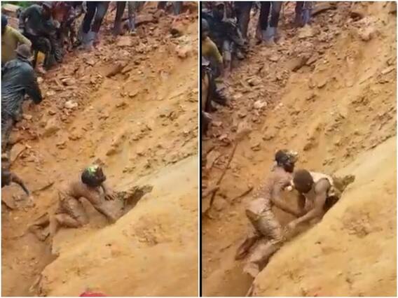 Shocking Viral Video: सोशल मीडिया पर हाल ही में एक वीडियो सामने आया है, जिसे देख यूजर्स के रोंगटे खड़े हो गए हैं. वीडियो में डेमोक्रेटिक रिपब्लिक ऑफ कांगो में ढह गई सोने की खान में काम करने वाले नौ लोगों को बच कर निकलते देखा जा रहा है. जिसे देख यूजर्स की आंखें फटी की फटी रह गई है. वीडियो में एक खड़ी ढलान से नीचे गिरते हुए मलबे के बीच से लोगों को बाहर निकलते दिख रहे हैं.
