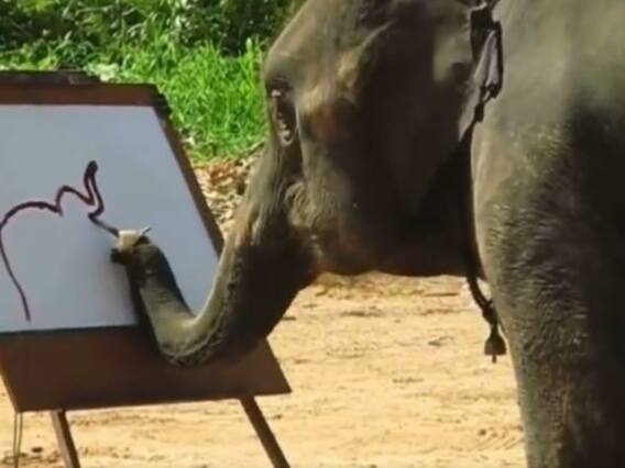वीडियो में हाथी के सामने एक बोर्ड और उस पर सफेद रंग की शीट दिखाई दे रही है. वहीं, इस शीट के सामने खड़ा हाथी अपनी सूंड से स्केच पेन को पकड़ते हुए शीट पर अपनी तस्वीर बनाते दिख रहा है. हाथी एक परफेक्ट पेंटर की तरह अपने अपने स्केच पेन को घुमाते हुए दिखाई दे रहा है. परफेक्ट तरीके से पेंटिंग बना रहा हाथी पहले अपनी सूंड बनाता है फिर पैर और आखिर में अपनी पूंछ.