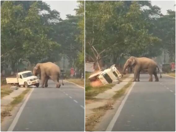 वायरल हो रही वीडियो को आईपीएस अधिकारी रूपिन शर्मा ने ट्विटर पर शेयर किया है. इस वीडियो में सड़क पर एक वाहन को खड़े देखा जा रहा है. तभी उसके सामने एक गुस्सैल हाथी पहुंच जाता है. फिर हाथी का गुस्सा सातवें आसमान पर पहुंच जाता है और वह वाहन को किसी खिलौने की तरह उठाकर पलट देता है. जिसे देख यूजर्स की आंखें फटी की फटी रह जाती हैं.