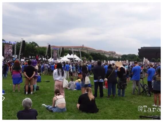 Trending Washington: अमेरिका में शनिवार 11 जून को नेशनल मार्च फॉर आवर लाइव्स गन रिफॉर्म रैली (March For Our Lives- gun reform rally) का आयोजन किया गया था. ये आयोजन वॉशिंगटन के नेशनल मॉल में किया गया था. वीडियो में देखा जा सकता है कि बंदूक हिंसा (gun violence) के पीड़ितों को श्रद्धांजलि देने के लिए कुछ मिनट का मौन रखा गया था, तभी भीड़ चौंक गई और इधर उधर भागने लगी. भीड़ को इस तरह से तितर बितर होता देखा लाउडस्पीकर से किसी महिला की आवाज आती है और वो सबसे गुजारिश करती है कि कोई अपनी जगह से न हिले, सब अपनी जगह पर रहें, और उसने ये भी बताया कि यहां कोई भी समस्या नहीं है.