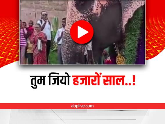 वायरल वीडियो में तिरुचिरापल्ली में अरुल्मिगु जंबुकेश्वर मंदिर के एक आराध्य हाथी का जन्मदिन मनाया गया है. इस हाथी का नाम अकीला है. मंदिर में भक्तों ने अकीला हाथी का जन्मदिन खूब धूमधाम से मनाया. वायरल वीडियो में देखा जा सकता है कि वहां के लोग हाथी को कितना प्यार दे रहे हैं. अकीला के जन्मदिन के मौके को और भी जानदार बनाने के लिए भक्तों ने अकीला को बैंगनी रंग के कपड़े और माला से लपेट दिया. वीडियो में देखा जा सकता है कि हाथी के आगे भक्तों ने बड़े बड़े थाल में ढेर सारे विभिन्न प्रकार के फल रख दिए हैं जिसे हाथी ने बड़े मजे से खाए. अकीला वीडियो में बहुत खुश है और अपनी खुशी का इजहार उसने सूढ़ उठाकर किया.