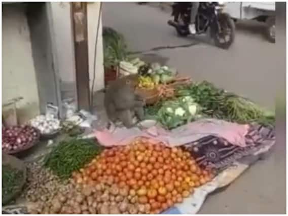 Trending Video: सोशल मीडिया पर एक बंदर का वीडियो तेजी से वायरल हो रहा है. इस वीडियो में बंदर सब्जी बेचते नजर आ रहा है जिसे लोग बहुत पसंद करते दिख रहे हैं. बंदर के इस वायरल वीडियो में लोग बेहद फनी रिएक्शन भी दे रहे हैं. आइये देखते हैं इस वायरल वीडियो को.