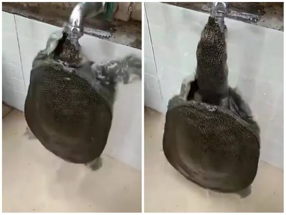 वायरल हो रही एक वीडियो में दिख रहा कछुआ काफी छोटा है जो की घर में पानी के नल के नीचे नहाते देखा जा रहा है. इस दौरान वह अपनी प्यास बुझाने के लिए अनोखा जुगाड़ लगाता है. वीडियो में कछुए को तेजी से अपनी खोल के अंदर से अपनी लंबी गर्दन को निकाल कर नल को अपने मुंह में दबा देता है. कछुआ (Turtle) नल से पानी पीते हुए भी देखा जा रहा है. इस दौरान वह अपने शरीर को नीचे की ओर धकेलता है और मुंह से नल को पकड़े रहता है.