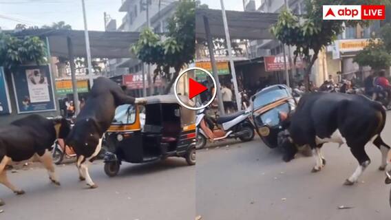 वायरल वीडियो सड़क का है जहां अचानक दो सांड आपस में भिड़ जाते हैं. पहले तो दोनों सड़क के बीच सींग भिड़ाकर ताकत आजमाते हैं लेकिन देखते ही देखते मामला इतना बढ़ जाता है कि दोनों बेकाबू होकर पास खड़े ऑटो पर गिर जाते हैं. टक्कर इतनी जोरदार होती है कि ऑटो का अगला हिस्सा पूरी तरह से चपटा हो जाता है. वीडियो में साफ देखा जा सकता है कि ऑटो का चालक पास ही खड़ा था और घटना देखकर हैरानी में पड़ गया. पहले तो वह समझ ही नहीं पाया कि उसके साथ हुआ क्या है. कुछ सेकंड बाद जब उसने अपने ऑटो की हालत देखी तो सिर पकड़ लिया.
