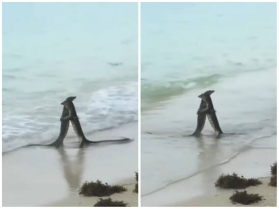 वायरल हो रही इस वीडियो को सोशल मीडिया पर वाइल्ड लाइफ कल्चर नाम के इंस्टाग्राम पेज पर शेयर किया गया है. इस वीडियो में समुद्र के किनारे दो बड़ी छिपकलियों को आपस में गले मिलते देखा जा रहा है. यह वीडियो सोशल मीडिया यूजर्स को काफी पसंद आ रहा है. जिसे देख वह अपनी बचपन की यादों में खो गए हैं.