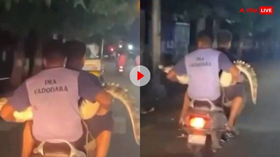 हाल ही में सोशल मीडिया पर एक वीडियो तेजी से वायरल हो रहा है जिसने सभी का ध्यान अपनी ओर खींचा है. यह वीडियो देखने में डरावना और हास्यास्पद दोनो है. वीडियो में दो लोग एक स्कूटर पर खतरनाक मोटे मगरमच्छ के साथ ट्रिपलिंग करते दिखा रहे हैं. जी हां, आपको जानकर हैरानी होगी कि स्कूटर पर दो लोगों के अलावा तीसरा मगरमच्छ भी है. ये दोनों शख्स मगरमच्छ को रिहायशी इलाके से पकड़कर वन विभाग में छोड़ने जा रहे हैं. दरअसल, वडोदरा में बाढ़ से हालात बेकाबू होने के बाद जब जलस्तर कम हुआ तो इसमें मौजूद मगरमच्छ भी रिहायशी इलाको में ही रह गए, जिसके बाद कड़ी मेहनत करके इन्हें पकड़ा गया और स्कूटर पर ही बैठाकर वन विभाग के दफ्तर ले जाया गया.