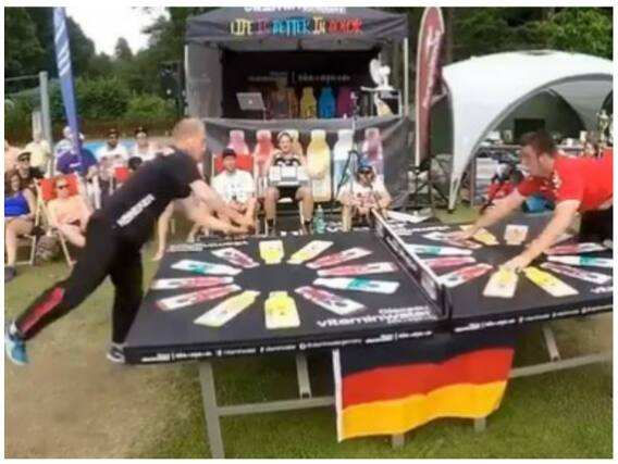 हाल ही में एक वीडियो सोशल मीडिया पर सामने आया है. इसमें एक अजीबोगरीब खेल खेलते कुछ लोग दिख रहे हैं. जिसे देख हर किसी का दिमाग चकरा गया है. वीडियो में दर्शकों के बीच रखी टेबल टेनिस की रेगुलर टेबल पर दो लोगों को फुटबॉल के साथ खेलते देखा जा रहा है. जिसे वहां मौजूद लोग काफी एंजॉय करते देखे जा रहे हैं.