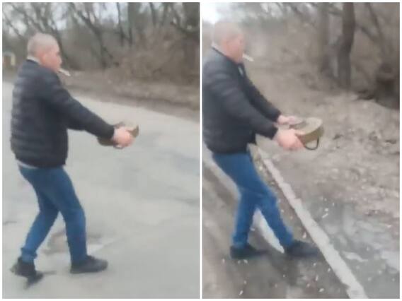 हाल ही में सोशल मीडिया पर सामने आए वीडियो में एक शख्स को अपने नंगे हाथों से एक एंटी टैंक माइन को ले जाते समय अपनी जान जोखिम में डालते हुए देखा जा सकता है, इस दौरान देखा जा सकता है कि वह शख्स सिगरेट पी रहा है. वीडियो में देखा जा सकता है कि वह शख्स रूसी एंटी टैंक माइन को पुल से दूर सड़क के पार ले जा रहा है. इस दौरान वह बिल्कुल भी डरा हुआ नहीं दिखाई देता है.