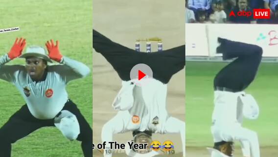 मैच में जैसे ही बॉलर ने बॉल डाली वैसे ही बॉल वाइड हो गई. वाइड देने के लिए अंपायर अपने हाथों को फैला कर टाइटैनिक पोज देते हैं, लेकिन इस मैच के अंपायर को कुछ और ही सनक चढ़ी थी. बॉल के वाइड होते ही अंपायर अपने सिर के बल खड़ा हो गया और अपनी दोनों टांगों को चौड़ा कर वाइड का इशारा देने लगा. इसके बाद अगली बॉल पर जब बल्लेबाज ने छक्का जड़ा तो अंपायर ने सिर के बल खड़े होकर अपनी दोनों टांगों से छक्के का इशारा दिया.