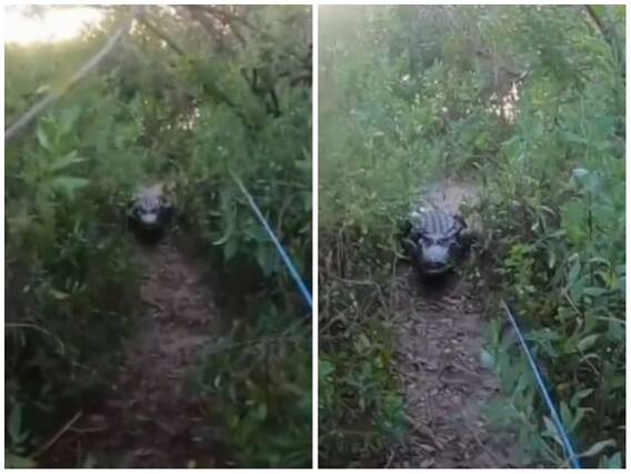 फिलहाल इस दौरान टॉमी ली काफी शांत रहता है और मगरमच्छ (Alligator) को डराने की कोशिश करता है. इसके बाद मगरमच्छ गुस्से में आकर उसकी ओर बढ़ जाता है. जिसे अपने ओर आता देख टॉमी ली वहां से तेजी से भागकर अपनी जान बचाता है. फिलहाल वायरल (Viral Video) हो रहे इस वीडियो में गुस्सैल मगरमच्छ के साथ हुई मुठभेड़ में शख्स अपनी जान बचा लेता है.