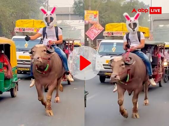 Man Sitting on Buffalo Viral Video: देश में पेट्रोल के दामों में अक्सर उतार चढ़ाव देखने को मिलता है. बढ़ती महंगाई की वजह से पेट्रोल-डीजल खरीदने में लोगों की जेब भी ढीली हो रही है. ऐसे में एक शख्स ने एक ऐसा तरीका निकाला, जिसकी सोशल मीडिया पर इन दिनों खूब चर्चा है. सोशल मीडिया पर इन दिनों एक वीडियो तेजी से वायरल हो रहा है. इस वीडियो में एक शख्स सड़क पर भैंस लेकर सवारी करते नजर आ रहा है. वीडियो में शख्स ने खरगोश के आकार का एक हेलमेट भी पहना है. सोशल मीडिया पर इस वीडियो को खूब पसंद किया जा रहा है. वहीं, लोग इसपर जमकर अपना रिएक्शन भी दे रहे हैं.