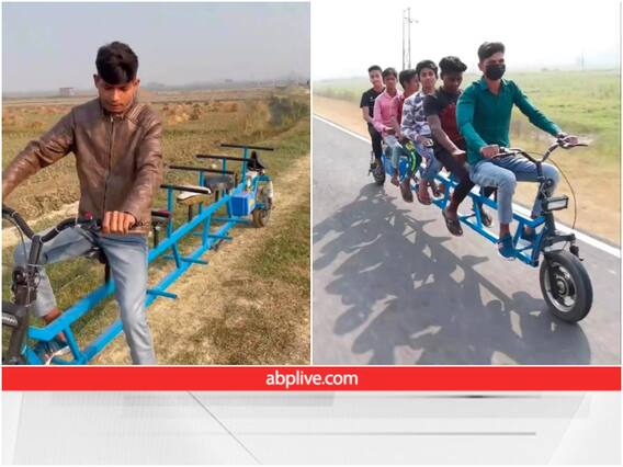 Trending Video: गांव के लड़के ने एक ऐसी बाइक तैयार की है, जिसमें एक साथ 2-3 नहीं बल्कि 6 लोग बैठ सकते हैं. इसमें ड्राइवर सीट के आलावा पांच और सीट लगी हुई है. यानी ये बाइक पूरी 6 सीटर है. ये कारनामा कर दिखाया है गांव के एक युवा लड़के ने, जिसको वायरल हो रहे वीडियो में अपने इस आविष्कार के बारे में समझाते हुए देखा जा सकता है.
