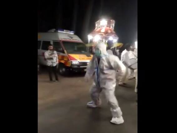 दरअसल ये वीडियो उत्तराखंड से वायरल हुआ है जिसमें नैनीताल का रहने वाला एंबुलेंस ड्राइवर महेश डांस करता नजर आ रहा है. जानकारी के मुताबिक वीडियो को 26 अप्रैल को कैप्चर किया गया है, जब हल्द्वानी से बारात उस अस्पताल के सामने से गुजरी जहां पर महेश काम करता है, तब बारात को देख महेश खुद को डांस करने से रोक ना सका और पीपीई किट पहने बारात में शामिल हो गया और डांस करने लगा. उसके डांस का वीडियो बारात में शामिल किसी मेहमान ने बनाया है.