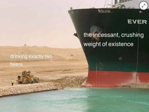 इंटरनेट पर बड़े शिप के पास खड़े छोटे बुल्डोजर की तस्वीर शेयर होते ही वायरल हो गई और यूजर्स ने छोटे से बुल्डोजर का मजाक बनाते हुए काफी मीम शेयर किए हैं. वहीं कॉमिक कलाकार चैज़ हटन ने ट्रैफिक जाम पर एक चित्र पोस्ट किया है.