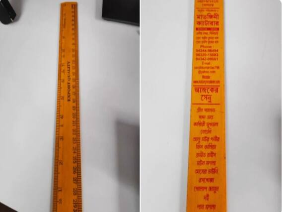 एक ट्विटर यूजर ने इस शादी के मेन्यू कार्ड को पोस्ट किया है. इस मेन्यू कार्ड की झलक सामने आते ही यह वायरल हो गया. इस दो से डाई इंच चौड़ी और 30 सेमी लंबी लकड़ी की स्केल पर जिस करीने के साथ शादी का मेन्यू कार्ड छापा गया है वह काबिले तारीफ है.