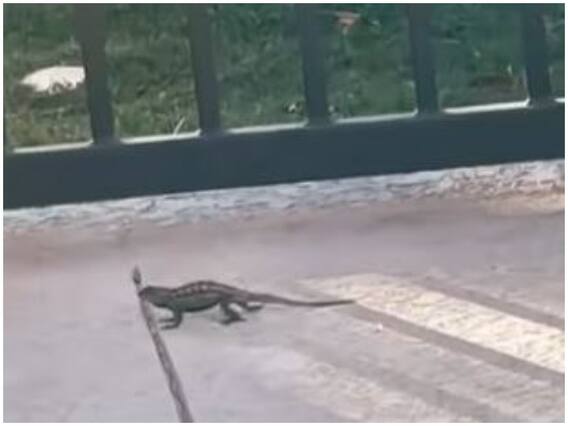 गिरगिट रंग बदलने के लिए मशहूर है. गिरगिट के रंग बदलने की कला मुहावरे के रूप में भी काफी फेमस है. अब सोशल मीडिया पर वायरल हो रहे वीडियो में एक गिरगिट को देखा जा सकता है. हालांकि ये वीडियो गिरगिट के रंग बदलने के कारण वायरल नहीं हुआ है बल्कि किसी और कारण से ये वायरल हुआ है.