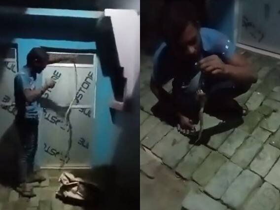 इस घटना का एक वीडियो भी सोशल मीडिया वायरल हो रहा है. इस वीडियो में देखा जा सकता है कि 22 वर्षीय शख्स शराब के नशे में सांप के साथ खेल रहा है. शख्स ने सांप को उसकी पूछ से उल्टा पकड़ा हुआ है. पहले तो वह उसे झुलाता रहता है, लेकिन फिर एकाएक उसे गुस्सा आता है और वह सांप को जोर से जमीन पर पटक देता है. जमीन पर पटके जाने के बाद सांप मूर्छित हो जाता है. लेकिन शख्स फिर भी अपनी हरकतों से बाज नहीं आता. वह उसे दोबारा छेड़ने लगता है.