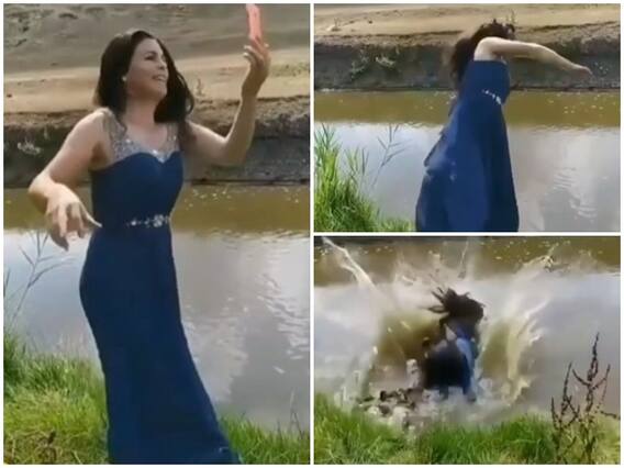 इस वीडियो को एक यूजर ने इंस्टाग्राम पर शेयर किया है. इस वीडियो में एक लड़की नीली ड्रेस में नजर आती है. वह नहर किनारे खड़ी होकर सेल्फी ले रही होती है. वह कई बार पिक्चर क्लिक भी कर चुकी है. इसके बाद भी वह और कई पोज में सेल्फी लेना जारी रखती है. सेल्फी लेने के दौरान वह बार-बार उछलती है और चेहरे के एक्सप्रेशन को बदलती रहती है. इस बीच उछलने के दौरान उसके पैर का संतुलन बिगड़ जाता है और वह नहर में जाकर गिर जाती है.