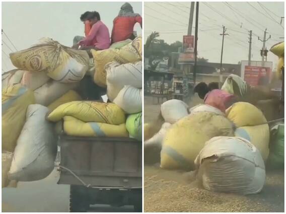 सड़क पर भूसा व लोगों के बिखरने का वीडियो हुआ वायरलकुछ दिनों से एक वीडियो सोशल मीडिया पर खूब शेयर किया जा रहा है. वीडियो एक सड़क दुर्घटना का है. वीडियो में कुछ लोग एक ट्रैक्टर-ट्रॉली पर बैठे हुए नजर आते हैं. ट्रॉली भूसे के बोरों से भरी हुई है. कपड़े और बोरे में रखा भूसा ट्रैक्टर-ट्रॉली की चाल के साथ हिल रहा होता है. फिर अचानक से भूसे के बोरे नीचे गिर जाते हैं. बोरों के साथ उनपर बैठे लोग भी सड़क पर बिखरते हुए नजर आते हैं. ट्रॉली पर बैठे 3 लोगों में से 2 लोग सड़क पर बोरों के साथ घिसटते हुए दिखते हैं. कुछ दूर तक ट्रैक्टर-ट्रॉली के साथ भूसा भरे कपड़े में लिपटते हुए नजर आते हैं. यह पूरी घटना ट्रैक्टर-ट्रॉली के पीछे चल रही गाड़ी में लगे कैमरे में रिकॉर्ड हो जाती है. आप भी देखें यह दिल दहला देने वाली वीडियो.