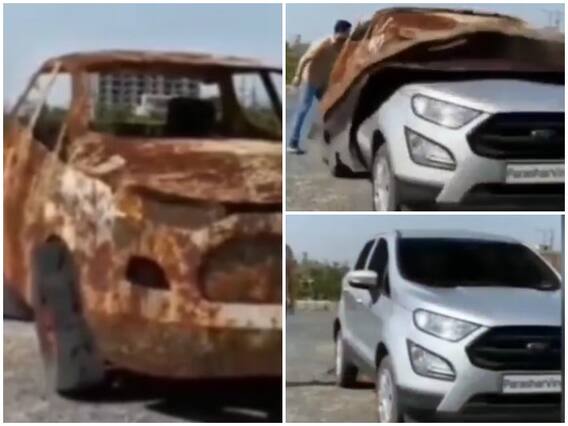 सोशल मीडिया पर वायरल हो रहा यह वीडियो एक यूनिक आइडिया से जुड़ा हुआ है. इसमें एक काफी पुरानी और खटारा कार खड़ी नजर आती है. इसे देखकर लगता है मानो यह 25-30 साल पुरानी है और हादसे के बाद डैमेज भी हो गई है. इसके बाद अचानक फ्रेम में एक शख्स की एंट्री होती है. उसके आते ही एक बड़ा राज खुलता है. यही इस वीडियो का सबसे अहम पार्ट है.