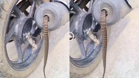 Video: सोशल मीडिया पर एक हैरान कर देने वाला वीडियो तेजी से वायरल हो रहा है. इस वीडियो में देखा जा सकता है कि सड़क किनारे एक बाइक खड़ी है, लेकिन बाइक के साइलेंसर के बाहर सांप का आधा शरीर लटक रहा है, और वह धीरे-धीरे साइलेंसर के अंदर घुसता जा रहा है. यह नजारा देखकर वहां मौजूद लोग हैरान रह गए.