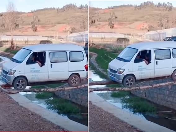 दरअसल 17 सेकेंड के एक क्लिप में दिखाया गया है कि कैसे एक व्यक्ति बल्लियों (पेड़ के तनों) की पुल बनाकर अपनी गाड़ी के एक छोड़ से दूसरे छोड़ ले जाता है. वीडियो में देखा जा सकता है कि एक बड़ी सी नहर के उपर दो बल्लियां रखी गई है. ये बल्लियां बिल्कुल गाड़ी के चक्के के डिस्टेंस पर रखी गई है.