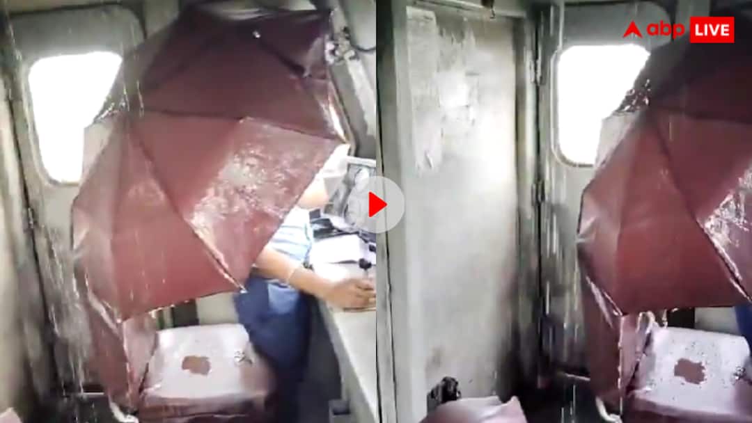 बरसात में आपने लोगों के मकान, झोपड़ी और घर तो टपकते देखे ही होंगे, लेकिन क्या आपने कभी ट्रेन को टपकते हुए देखा? वायरल वीडियो में ट्रेन की छत टपक नहीं रही बल्कि बह रही है. ऐसा हम आपको इसलिए कह रहे हैं क्योंकि चलती ट्रेन में लोको पायलट छाता लेकर बैठा है. वीडियो में देखा जा सकता है कि कैसे ट्रेन रफ्तार में चल रही है, और ट्रेन का सनरूफ खुला हुआ है.