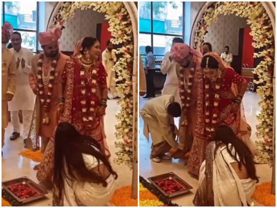 Joote Churai Video: शादियां हर किसी के मस्ती और सेलिब्रेशन का दूसरा नाम होती हैं. शादी का नाम सुनते ही हर कोई मस्ती और सेलिब्रेशन की प्लानिंग करने लगता है. इसके साथ ही शादी में कुछ मजेदार रस्में भी होती हैं जिसके लिए दूल्हे दुल्हन का करीबी काफी बेसब्री से इंतजार करते हैं. ऐसी ही एक मजेदार रस्म है जूते चुराई की रस्म. इसके लिए सालियों का काफी बेसब्री से इंतजार होता है. जीजाजी के जूते चुराने के बाद साली मुंह मांगा नेक पाती हैं.