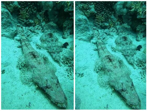 वायरल हो रही वीडियो में एक स्कूबा डाइवर समुद्र की गहराई में जाकर उसके तल पर लेटी हैरतअंगेज मछली को अपने कैमरे में रिकॉर्ड करते देखा जा रहा है. वीडियो में यह मछली किसी दैत्य की तरह लग रही है. जिसे देख यूजर्स के पसीने छूट गए हैं. वहीं वीडियो में दो मछलियों को समुद्र के तल पर आराम करते देखा जा रहा है.