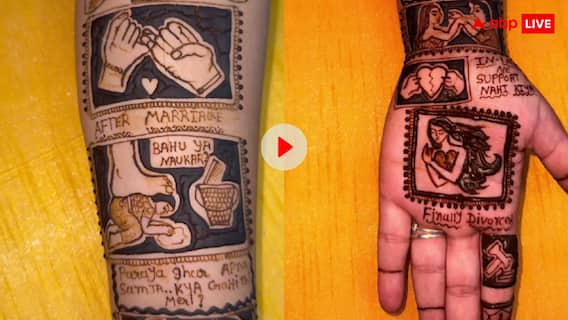 Trending Video: मेहंदी को शगुन और पवित्र माना जाता है. जब भी कोई त्यौहार होता है या फिर शादी ब्याह का मौका आता है तो मेहंदी को शुभ मानकर हाथों पर लगाया जाता है. पूजा पाठ में भी कई जगह मेहंदी का इस्तेमाल किया जाता है. लेकिन कैसा हो कि मेहंदी को तलाक के लिए इस्तेमाल किया जाए. जी हां, सोशल मीडिया पर एक वीडियो तेजी से वायरल हो रहा है, जिसमें एक महिला ने मेहंदी लगवाकर बताया कि उसने तलाक क्यों लिया. इंटरनेट पर यूजर्स इसे लेकर तरह तरह की चर्चा कर रहे हैं.