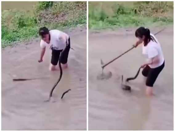 वायरल हो रही इस क्लिप को सोशल मीडिया पर अर्थ टैल नाम के इंस्टाग्राम पेज पर शेयर किया गया है. इस वीडियो में एक महिला खेत में काम करने के दौरान अपने सामने एक काले रंग के जहरीले सांप को देखती है. इसके बाद वह उसके सामने से हटने के बजाए उससे लड़ने की ठान लेती है.