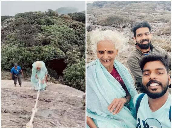 बीते कुछ दिनों पहले हमने एक उम्रदराज महिला को रस्सी के जरिए ऊंचे प्लेटफॉर्म से सरकते देखा था. फिलहाल अब एक और वीडियो आया है, जिसमें एक वृद्ध महिला को काफी ऊंचे पहाड़ पर रस्सी के सहारे चढ़ते देखा जा रहा है. जिसे देख यूजर्स का मुंह खुला का खुला रह गया है. वीडियो देख हर कोई हैरानी से 62 वर्षीय नागरत्नम्मा की ओर देख रहा है.